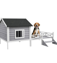 Product Name:PawHut Small/Medium Dog House with Porch, Grey