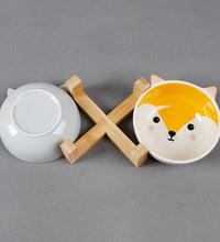 Product Name: Ceramic Cartoon Bowl with Bamboo and Wooden Bracket
